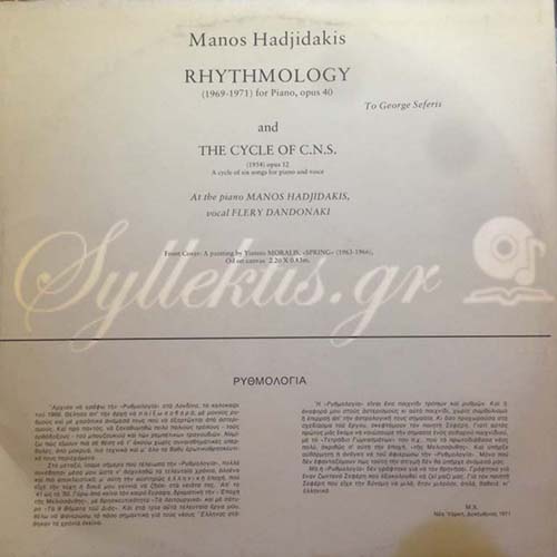 Ετικέτες: Ρυθμολογία, κύκλος, C.N.S., Τραγούδι, Φλέρυ, Νταντωνάκη, εξώφυλλο, Μόραλης, πιάνο, Χατζιδάκις, πρώτη, έκδοση