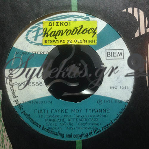 Αγγελόπουλος Μανώλης - Γιατί Γλυκέ Μου Τύραννε / Στου Ποδονίφτη Τα Ταβερνάκια